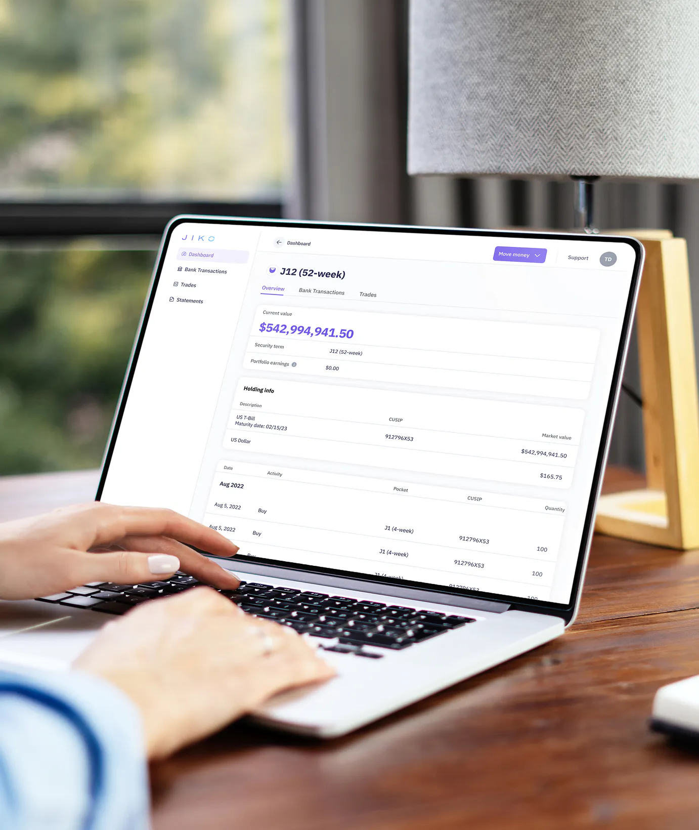 Funds deposited at Jiko are immediately swept and invested into US T-bills of the client's choosing, owned directly (with CUSIPs in their name)